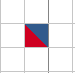 This is where a square of the chart contains two colours. Usually, it is left to the stitcher to decide which stitch will be made the 3/4 and which the 1/4.