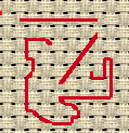 A separate 1/2 stitch resolution tool allows backstitches to be added which start and end in the centre of a grid square. This corresponds to every hole of an evenweave (linen) fabric. To stitch on Aida, a hole must be made by passing the needle through the material inbetween the existing holes.