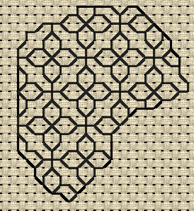 Blackwork is the making of a design from set patterns of backstitch usually in black thread.